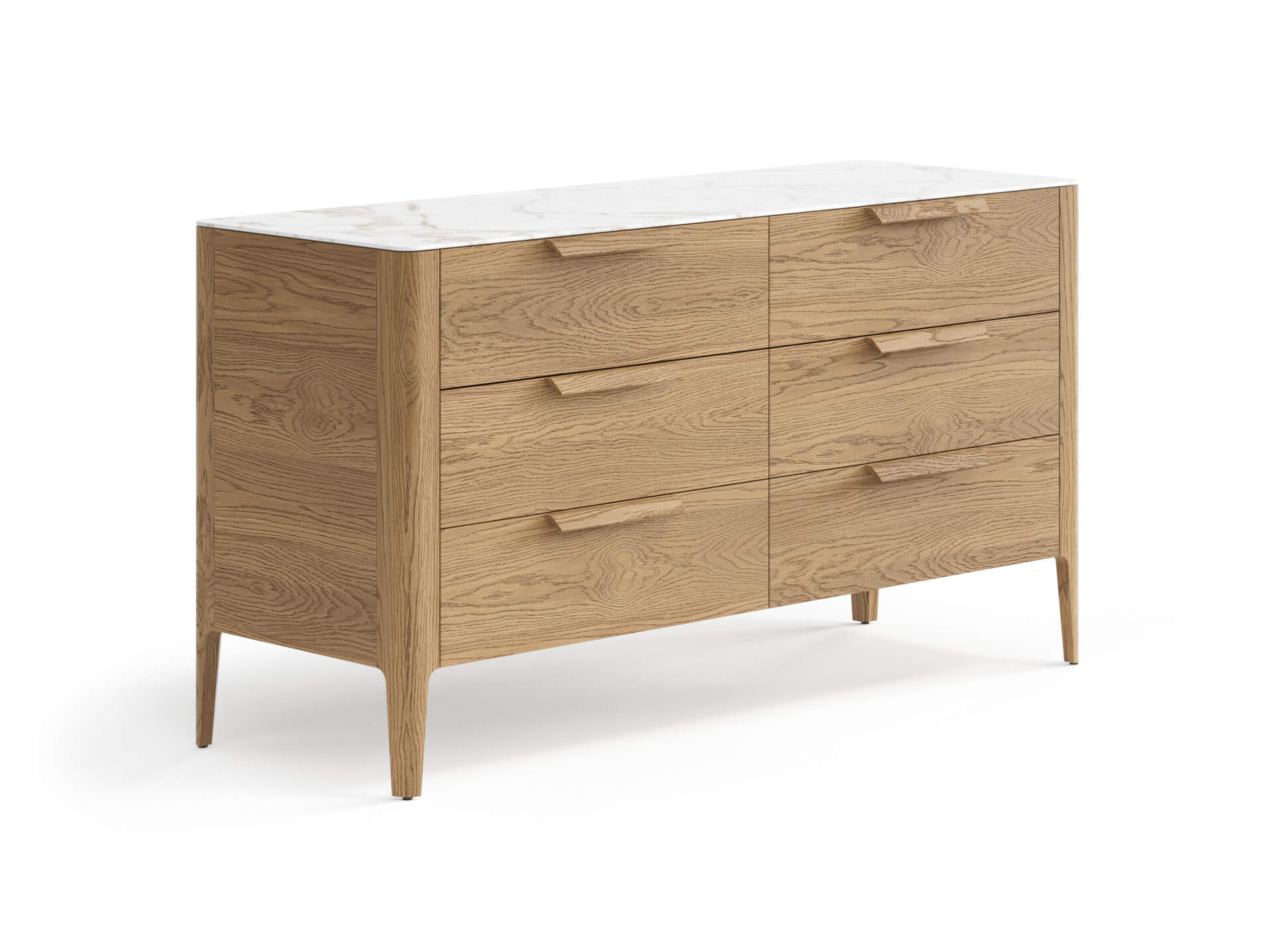 Изделие внесёт в пространство спокойствие и надёжность, искусно сглаженные формы и древесные тёплые отделки добавят природные мотивы. Благодаря скрытым направляющим выдвижных ящиков вид изделия остаётся безупречным всё время пользования. Количество циклов открывания и закрывания — 80 000. Это значит, что если вы будете пользоваться комодом дважды в день, изделие будет оставаться в идеальном рабочем состоянии и радовать вас примерно 55 лет.
