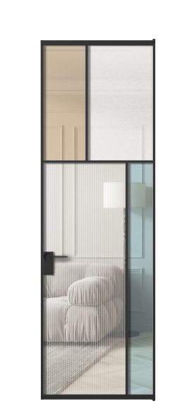Лаконичный разделительный профиль внутренней раскладки полотна обеспечивает эстетический внешний вид конструкции и идеальную стыковку вставок из стекла.