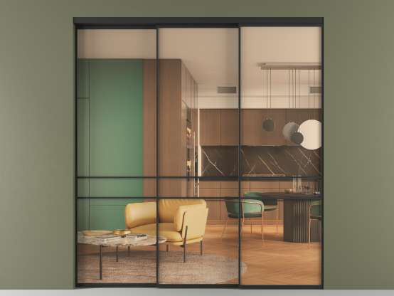 Перегородка Формато внутри проёма 3 створки с синхронным механизмом