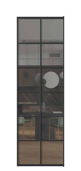 Минималистичный профиль повторяет форму профиля алюминиевых раздвижных перегородок Формато, что позволяет легко сочетать оба решения в одном пространстве.